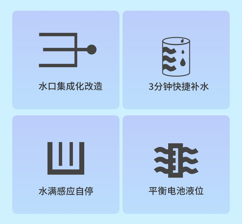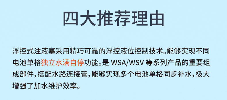 4.任意一個(gè)電池格液位達(dá)標(biāo)后,對應(yīng)注液閥自動關(guān)閉,多余水進(jìn)入其他缺水電池格