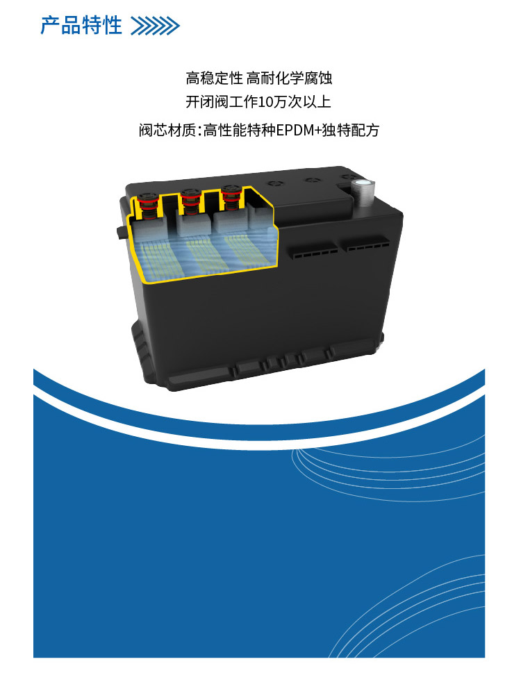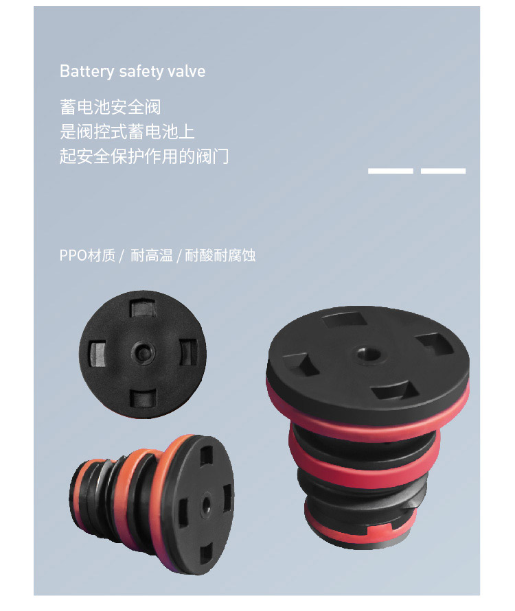 產(chǎn)品介紹蓄電池安全閥又稱蓄電池排氣閥,是閥控式蓄電池上起安全保護(hù)作用的閥門(mén)。在蓄電池工作時(shí)內(nèi)部反映放出氣體導(dǎo)致電池內(nèi)部壓力逐漸增加,當(dāng)壓力到達(dá)開(kāi)閥閾值時(shí),安全閥自動(dòng)打開(kāi)排出氣體,在電池內(nèi)部壓力下降至閉閥閾值后,安全閥自動(dòng)關(guān)閉,同時(shí)在此過(guò)程中可以防止外部氣體進(jìn)入電池和電池內(nèi)酸液濺出??梢员苊怆姵貎?nèi)壓力
