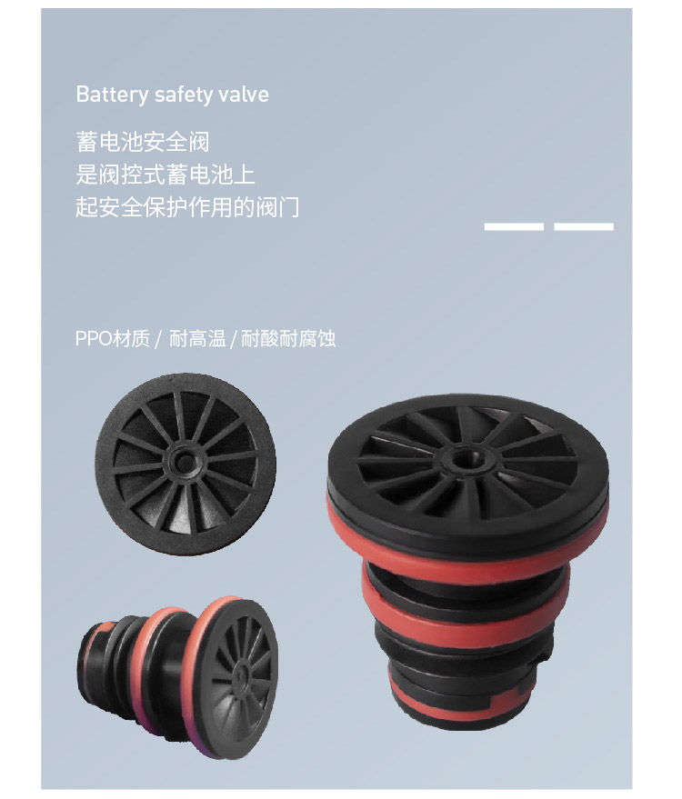 產(chǎn)品介紹蓄電池安全閥又稱(chēng)蓄電池排氣閥,是閥控式蓄電池上起安全保護(hù)作用的閥門(mén)。在蓄電池工作時(shí)內(nèi)部反映放出氣體導(dǎo)致電池內(nèi)部壓力逐漸增加,當(dāng)壓力到達(dá)開(kāi)閥閾值時(shí),安全閥自動(dòng)打開(kāi)排出氣體,在電池內(nèi)部壓力下降至閉閥閾值后,安全閥自動(dòng)關(guān)閉,同時(shí)在此過(guò)程中可以防止外部氣體進(jìn)入電池和電池內(nèi)酸液濺出??梢员苊怆姵貎?nèi)壓力